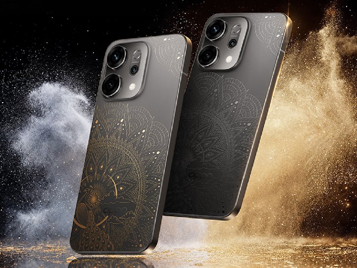 आपको नीचे कोने पर सुनहरे मंडला-शैली की कलाकृति और एक सुंदर सुनहरे मोर का डिज़ाइन भी मिलेगा। ओप्पो ने इस नए कलर ऑप्शन को दिवाली गोल्ड नाम दिया है।